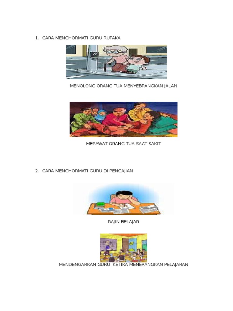 Pelbagai cara boleh kita lakukan untuk menghormati guru. Bagimanakah cara menghormati guru dalam ajaran islam sebgaimana pentingnya kedudukan guru dalam islam. Adapun cara siswa menghargai dan menghormati guru : Sikap ini adalah cara menghormati yang manfaatnya akan juga bagi diri anda karena mampu menyelesaikan apa yang diperintahkan oleh guru. Berikan contoh cara menghormati guru di sekolah. Buku aku cinta muhammadiyah hal 78. Menghormati orangtua maupun guru tidak pandang sebesar apapun ia memberikan manfaat untuk kita. Jadi hormatilah mereka dengan penuh kesabaran kerana tanpa mereka, kita tidak akan berjaya. Setidaknya, alasan menghormati guru sebagaimana berikut ini; Ucapkan salam ketika bertemu hendaklah mengucap salam disertai mencium tangan bapak/ibu guru merupakan orang tua kita saat disekolah, maka dari itu seyogyanya kita patuh dan taat kepada mereka selayaknya kita patuh pada orang tua. You have just read the article entitled karangan cara cara menghormati guru pt3. 8 cara menghormati guru dalam kehidupan sehari hari _ guru adalah orang tua kedua bagi siswa ketika berada dilingkungan sekolah. Ceritakan pada mereka bagaimana para sahabat duduk seperti patung ketika proses pembelajaran berlaku.